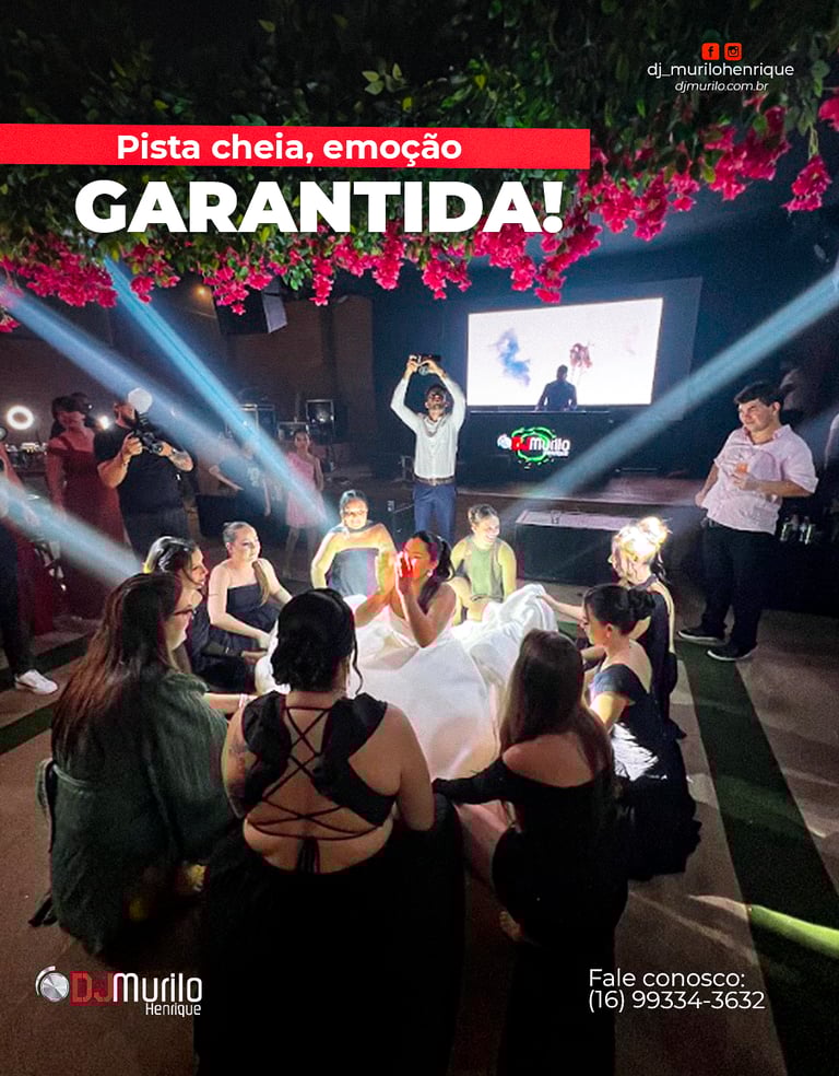 Quando a pista está cheia e os convidados estão envolvidos, é sinal de que a festa foi inesquecível! Momentos como esse não acontecem por acaso, é preciso sensibilidade para sentir o clima da galera, escolher as músicas certas e transformar cada batida em uma lembrança marcante! Com DJ Murilo Henrique no comando, sua festa não tem tempo morto! Ele cria experiências únicas, deixando os noivos tranquilos e os convidados animados do começo ao fim. E como mostra essa foto, é muito mais do que música: é conexão, entrega e emoção em cada detalhe. 🎧 Garanta uma pista cheia no seu evento! Fale agora mesmo com DJ Murilo Henrique e agende sua data. 📞 (16) 99334-3632 #CasamentoFranca #DJMuriloHenrique #FestaComDJ #PistaCheia #NoivaFeliz #EventoInesquecível